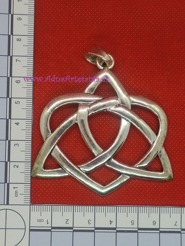 En este intrincado nudo celta el corazón es una línea ininterrumpida que simboliza un amor eterno. La estilizada Triqueta tejida dentro del nudo celta de las hermanas simboliza las tres etapas de la mujer, Doncella, Madre y Mujer Sabia